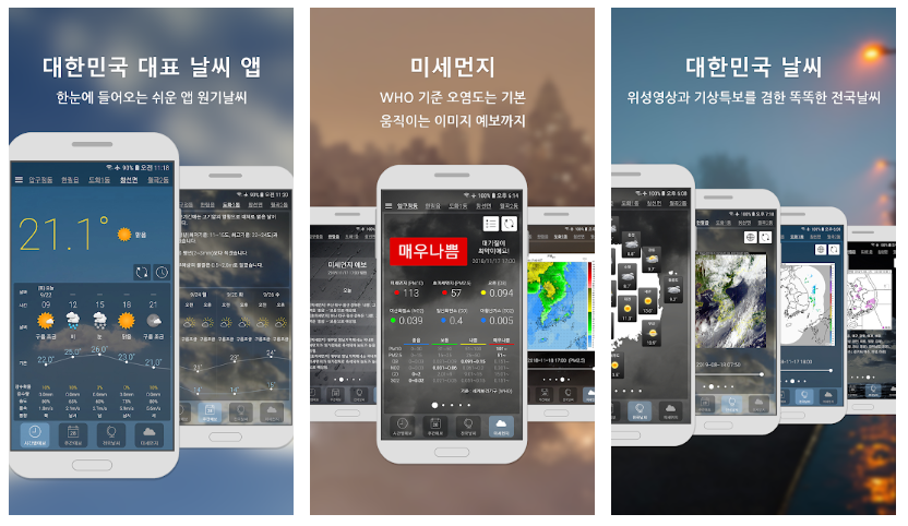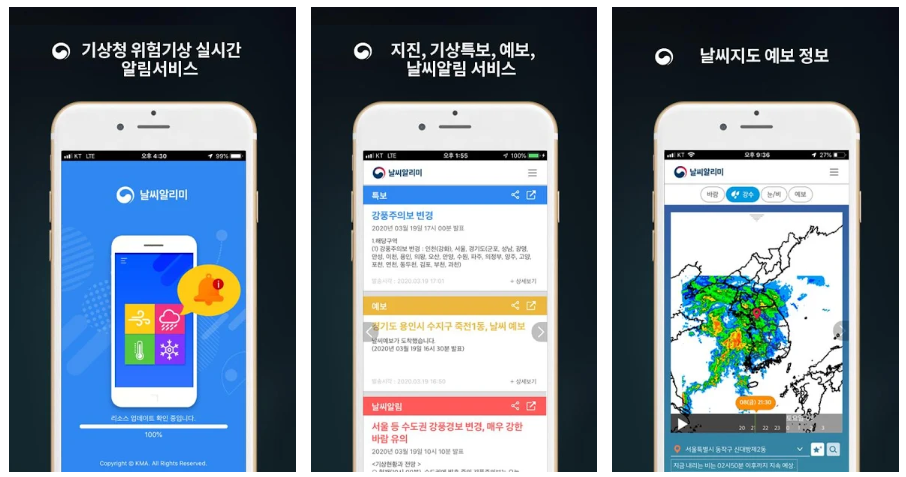 위 링크를 클릭하면 다운로드할 수 있습니다. 해당 앱은 모든 정보가 쉽게 제공되며 추가된 지역의 기상 특보 정보도 빠르게 확인할 수 있어서 정말 좋습니다. 레이더나 위성 영상도 주로 확인하는 사람들에게 좋은것 같아요. 정보의 양과 시각화, 알림 설정 및 다양한 위젯까지 제공되어서 하나 앱을 추천한다면 가장 먼저 추천할 만한 앱입니다.